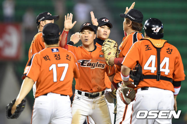 경기 종료 후 한화 선수들이 승리의 기쁨을 나누고 있다. /sunday@osen.co.kr