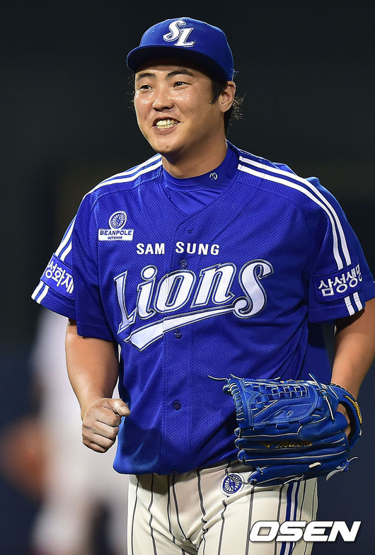 11일 오후 서울 목동 야구장에서 열린 '2014 한국야쿠르트 세븐 프로야구' 넥센 히어로즈와 삼성 라이온즈의 경기, 8회말을 마무리한 삼성 안지만이 기뻐하고 있다.