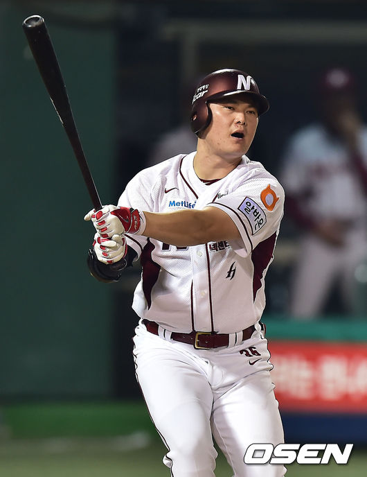 11일 오후 서울 목동 야구장에서 열린 '2014 한국야쿠르트 세븐 프로야구' 넥센 히어로즈와 삼성 라이온즈의 경기, 9회말 2사 넥센 이성열이 타석에서 삼진아웃을 당하고 있다.