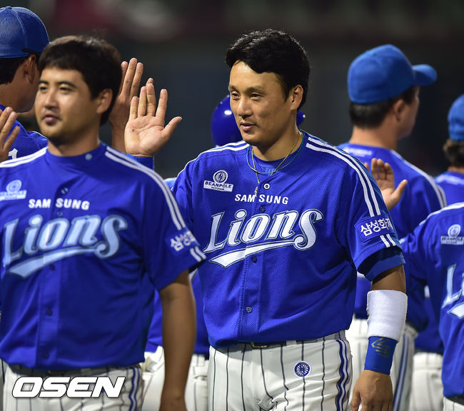 경기를 마치고 삼성 코치진들과 이승엽이 하이파이브를 하고 있다. / rumi@osen.co.kr