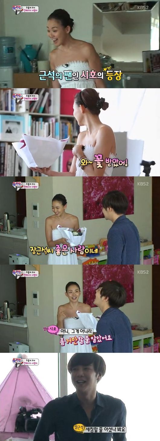이후 장근석에게 꽃다발을 선물 받은 야노시호는 “장근석 씨 좋은 사람이네. 좀 거만할 줄 알았는데 상냥하다”라며 돌직구를 던졌고 장근석은 “새침할 줄 알았나 보다”며 웃었다.