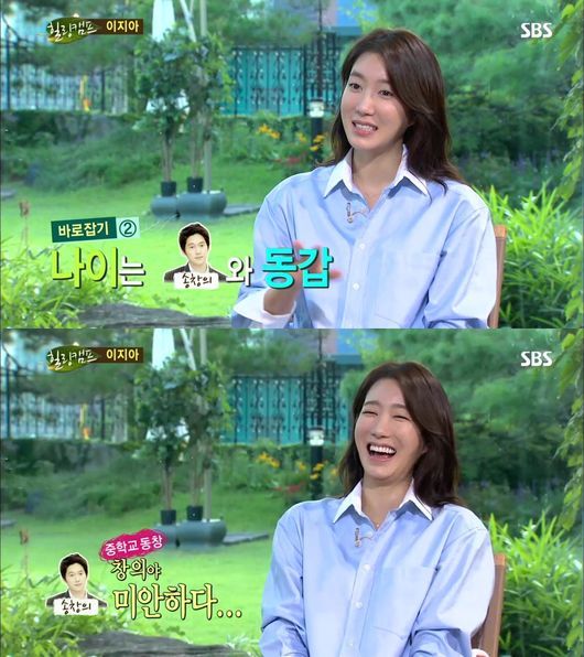 배우 이지아가 자신의 나이를 묻는 질문에 동료 송창의와 동갑이라고 말했다.