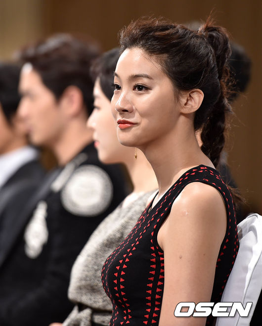 배우 유인영이 취재진의 질문을 듣고 있다.