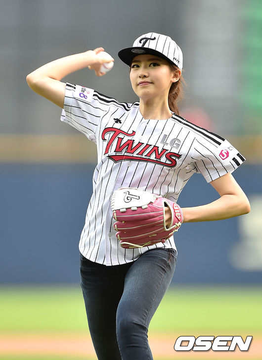 경기에 앞서 2014 미스코리아 진 김서연이 시구를 하고 있다.