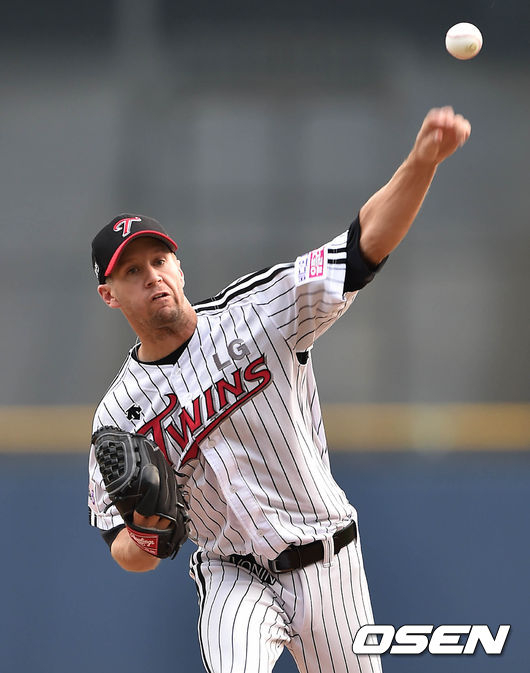 1회초 무사에서 LG 선발투수 티포드가 힘차게 공을 던지고 있다.