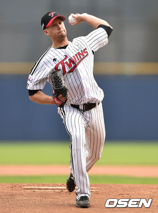 1회초 무사에서 LG 선발투수 티포드가 힘차게 공을 던지고 있다.