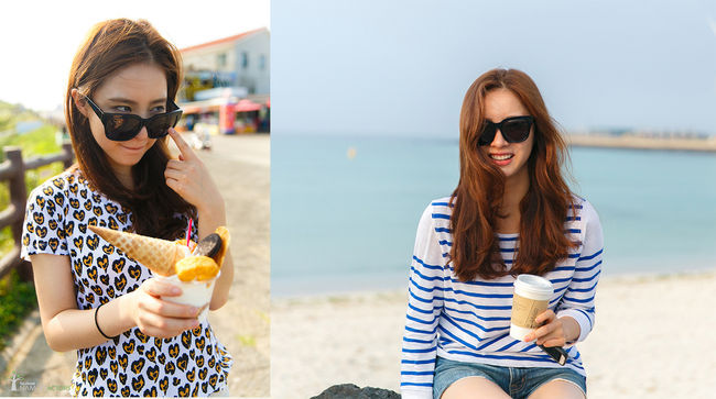 그는 선글라스 위로 아이스크림을 보며 장난기 가득한 웃음을 짓고 있다. 생기 넘치는 발랄한 미소와 인형 같은 외모가 눈길을 끈다. 평소 도도하고 세련된 매력과 달리 털털한 실제 모습이 시선을 끌어당긴다.