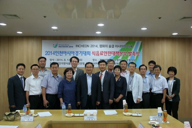 2014 인천아시아경기대회 조직위원회(위원장 김영수)는 12일 경인식약청 등 유관기관과 합동으로 ‘2014 인천AG 식음료안전대책본부’를 발족하고 현판식을 가졌다.
