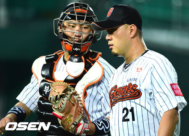 4회초 이닝을 마친 송승준이 덕아웃으로 발걸음을 옮기고 있다.