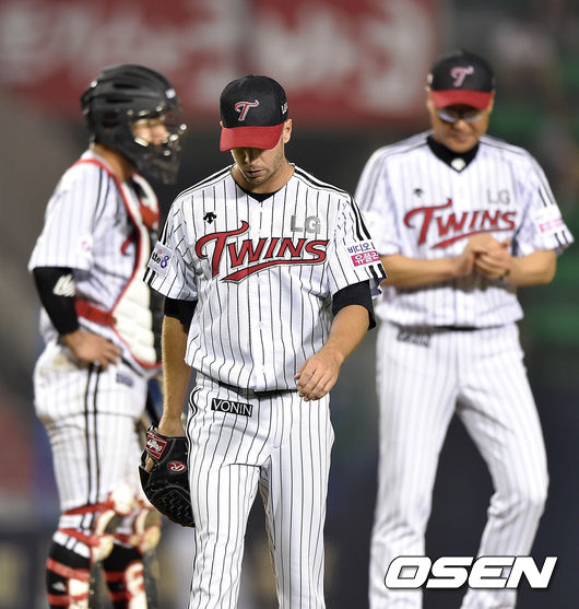 4회초 1사 2,3루에서 LG 티포드가 마운드를 내려가고 있다.