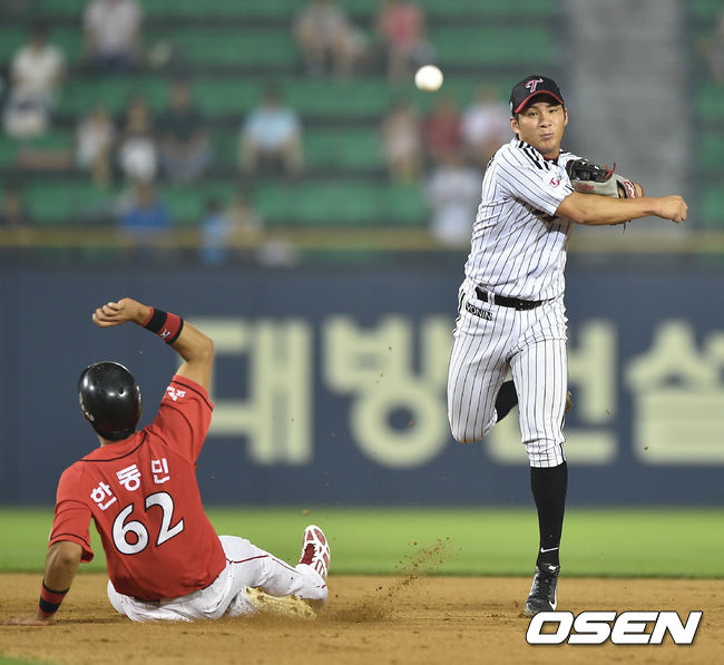5회초 1사 만루에서 LG 오지환이 SK 조동화를 병살타로 처리하고 있다.