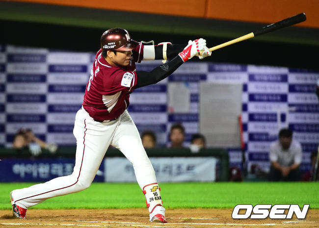 5회초 1사 3루 강정호가 1타점 적시타를 날리고 있다.