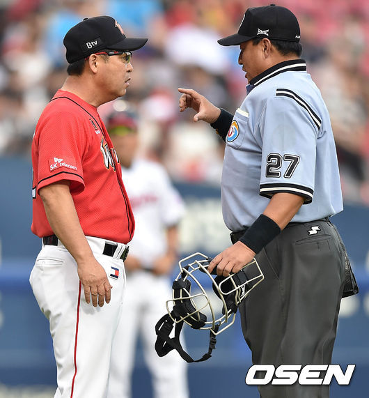 이만수 SK 감독은 12일 잠실구장에서 열린 ‘2014 한국야쿠르트 세븐 프로야구’ LG 트윈스전에서 합의판정을 요청했으나, 시간 초과로 요청은 받아들여지지 않았다.