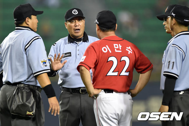 이만수 감독,'심판합의판정 시간이 지났어요'