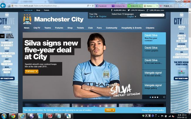 맨체스터 시티(이하 맨시티)는 12일(이하 한국시간) 공식홈페이지를 통해 다비드 실바와 5년 재계약을 맺었다고 발표했다. 지난 2010년 발렌시아에서 맨시티에 합류한 실바는 구단을 대표하는 선수로 성장했다. 그는 지난 시즌 맨시티의 프리미어리그 우승에 결정적 공헌을 했다.