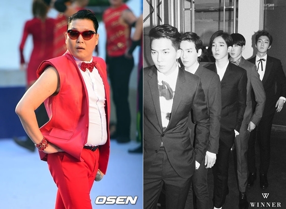 가수 싸이가 재치 있는 멘트로 소속사 후배그룹인 위너의 데뷔를 축하했다.
