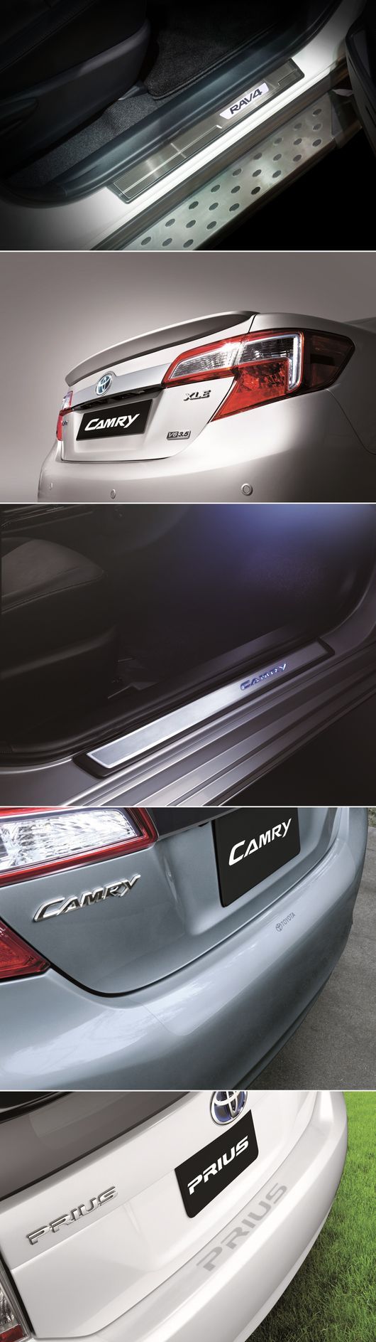 승하차의 높이가 높은 SUV의 안전한 승하차를 위해 미끄럼방지 처리가 된 사이드 스텝, 스포티한 스타일링과 차량의 접지력 향상에 도움을 주는 캠리 하이브리드용 리어 스포일러, LED 스커프 플레이트, 리어 범퍼 프로텍터, 도어 엣지 가드, 카펫 카고 매트 등이 대표적인 액세서리 아이템들이다.