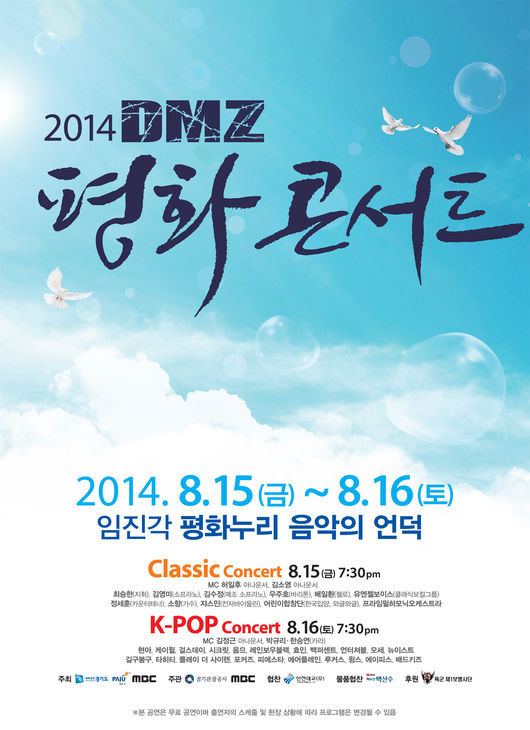 '2014 DMZ 평화콘서트'는 분단·대치·긴장의 현장 DMZ에서 화해와 상생, 한반도 평화와 통일을 염원하는 콘서트다. 올해로 4회째를 맞이했으며 경기도, 파주시, MBC가 공동 주최하는 행사다.