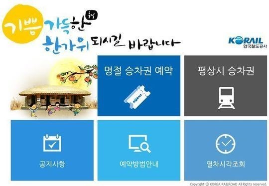 추석 열차표 예매 시간은 레츠코레일 홈페이지에서 오전 6시부터 오후 3시까지 9시간 동안 예매가 가능하다. 지정된 역과 승차권 판매 대리점에서는 오전 9시부터 11시까지 2시간 동안 예매할 수 있으며 1회 최대 6매까지 예매가 가능하다. 1인당 12매까지 가능한 예약한 승차권은 14일 오전 10시부터 17일 자정까지 결제해야 하고 결제하지 않은 경우 자동취소 돼 예약대기 신청자에게 우선순위가 부여된다.