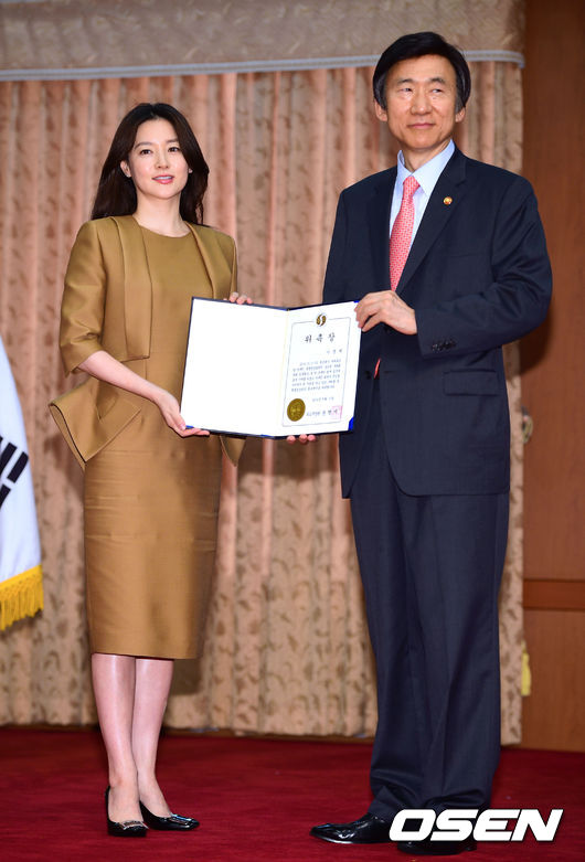 13일 서울 종로구 외교부 청사에서 진행된 이영애의 2014 한-아세안 특별정상회의 홍보대사에서 배우 이영애가 윤병세 외교부장관과 포즈를 취하고 있다.