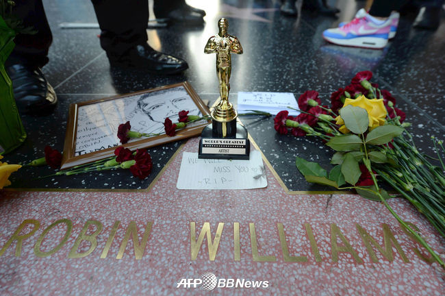 할리우드 로빈 윌리엄스 이름 앞에 놓여진 오스카 트로피