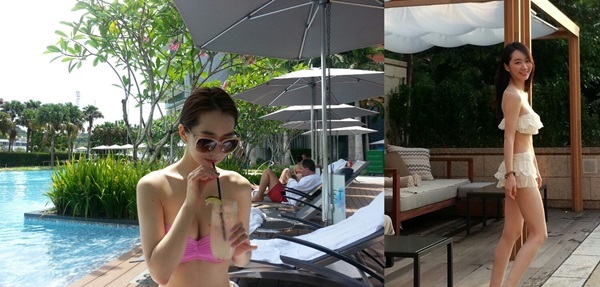 사진 속 홍가연는 비키니 수영복을 입고 수영장에 있는 모습. 특히 홍가연은 늘씬한 몸매를 과시하고 있다. 또 청순한 얼굴과 새하얀 피부로 관심을 모은다.