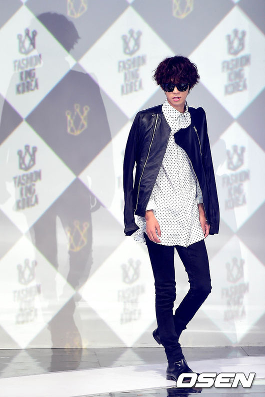 제작발표회에 참석한 가수 정준영이 포토타임 중 워킹을 선보이고 있다.