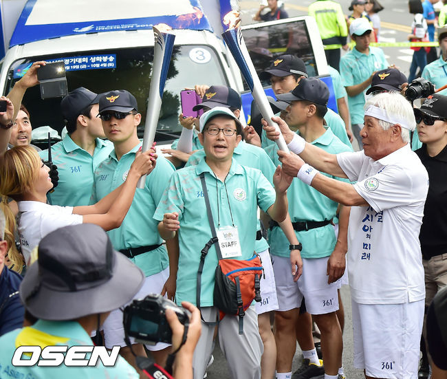 전날(12일) 오후 인천 강화군 마니산 참성단에서 채화된 국내 성화와 금일 오전에 인천항에 도착한 해외 성화(인도 뉴델리에서 채화)가 합화식을 갖고 국내봉송 대장정에 오르게 된다.