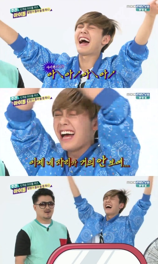 일훈은 13일 오후 방송된 케이블채널 MBC에브리원 '주간아이돌'에서 강민경이 드라마에서 선보였던 연기를 따라해야 했다.