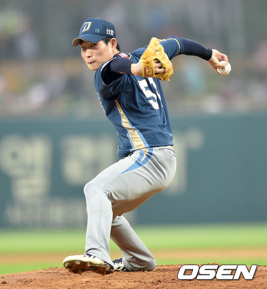 1회말 무사에서 NC 선발투수 이재학이 힘차게 공을 던지고 있다.