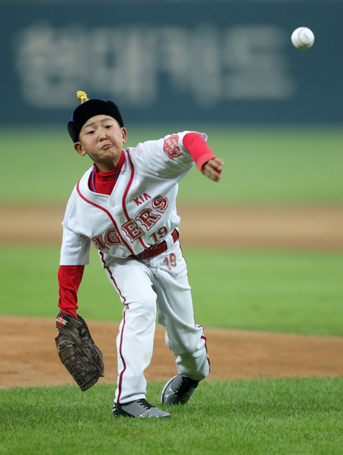 몽골 야구 꿈나무들은 경기전 나란히 KIA 덕아웃 앞에서 KIA 선수들과 함께 기념사진을 촬영했다. 이어 몽골 야구동아리 투수 돌고스렌 테물렝(12..사진)군이 몽골 전통모자를 쓰고 시구를 했다. 야무진 폼으로 스트라이크를 던져 관중들의 박수를 받았다.