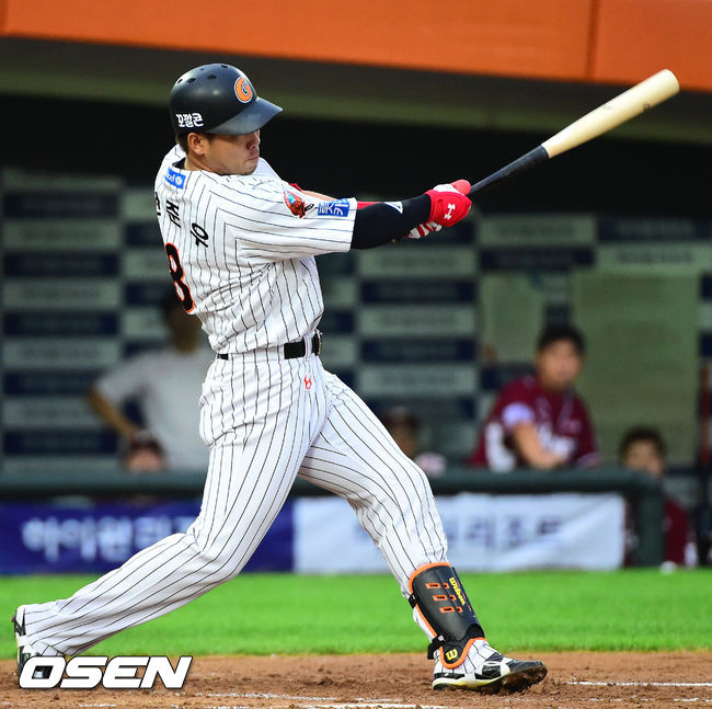 1회말 무사 3루 롯데 전준우가 1타점 적시타를 때리고 있다.