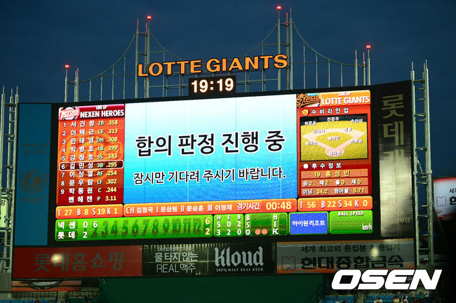 2회 2사 1,2루에서 강정호는 우중간에 큼지막한 타구를 날렸다. 타구는 펜스 상단을 때린 뒤 위로 솟구쳤고, 다시 펜스에 한 번 바운드 된 이후 그라운드로 떨어졌다. 윤상원 1루심의 판정은 홈런. 이 상황에 롯데 김시진 감독은 비디오 판독 요청했고 그 결과 강정호의 타구는 펜스 상단에 맞은 것으로 밝혀졌고, 33호 홈런은 2루타로 바뀌었다.
