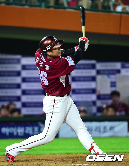 5회초 1사 주자없는상황에서 넥센 강정호가 솔포를 때리고 있다.