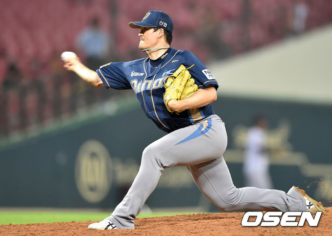6회말 NC 원종현이 힘차게 공을 던지고 있다.