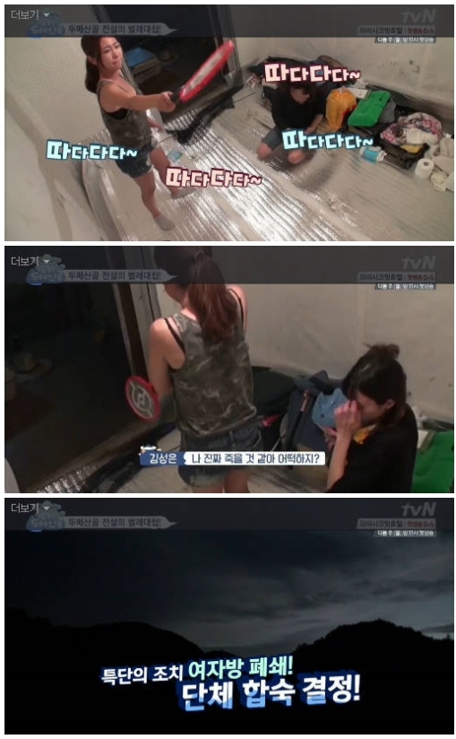 이날 잠자리를 준비하던 임은경과 김성은은 방충망과 채집기에도 해결되지 않는 벌레에 고통스러워 했다. 다행히 남자방은 벌레 문제가 해결됐고, 이에 단체 합숙을 결정했다.