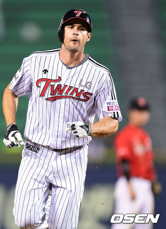[0SEN=잠실,박준형 기자] 13일 오후 서울 잠실구장에서 열린 2014 한국야쿠르트 세븐 LG 트윈스와 SK 와이번스의 경기, 6회말 무사 1루 LG 스나이더가 2점 홈런을 날리고 베이스를 돌고 있다.