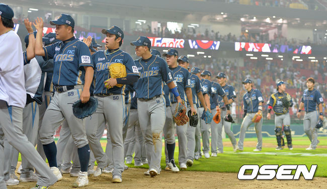 경기 종료 후 NC 선수들이 승리의 기쁨을 나누고 있다. /sunday@osen.co.kr