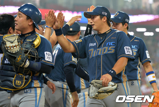 경기 종료 후 NC 선수들이 승리의 기쁨을 나누고 있다. /sunday@osen.co.kr