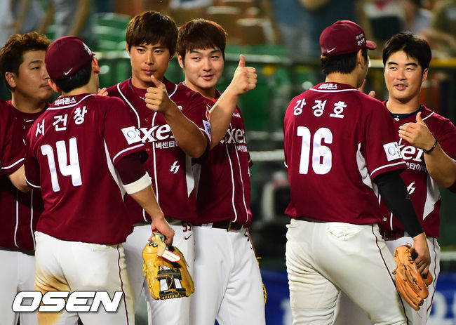 경기종료 후, 승리한 넥센 선수들이 세레모니를 하고 있다. /ouxou@osen.co.kr