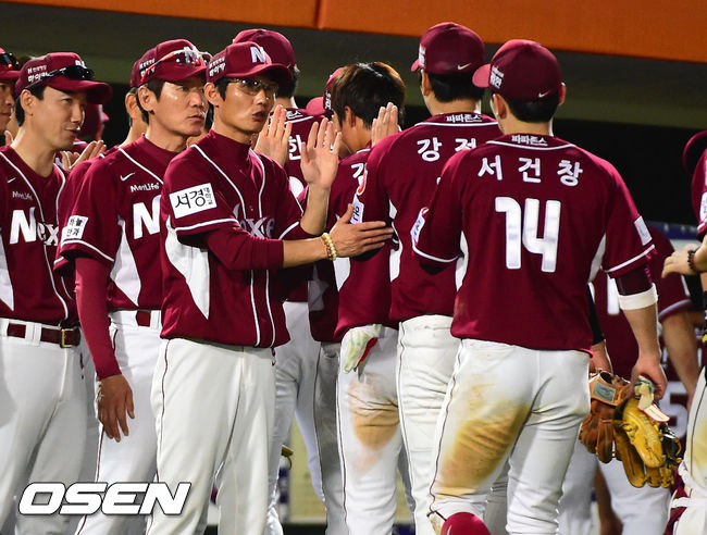 경기종료 후, 승리한 넥센 염경엽 감독과 선수들이 기쁨의 인사를 나누고 있다. /ouxou@osen.co.kr