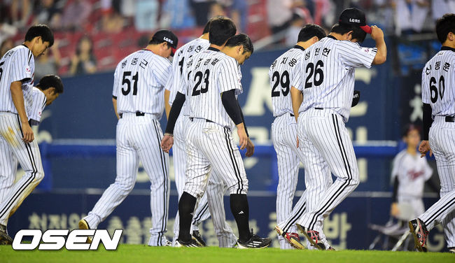 경기종료 후 LG 선수들이 패배에 아쉬워하고 있다. /soul1014@osen.co.kr
