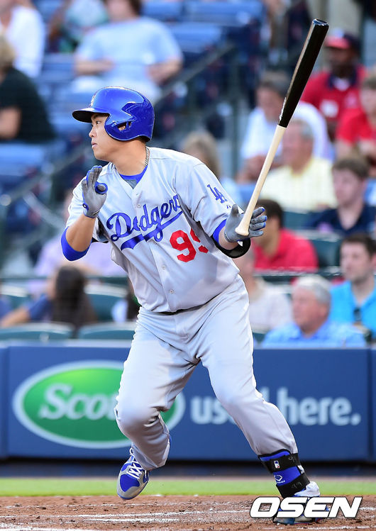 14일 (이하 한국시간) 미국 조지아 애틀랜타 터너필드에서 열린 '2014 메이저리그' 애틀랜타 브레이브스와 LA 다저스의 경기, 2회초 2사 1루 류현진이 안타를 치고 있다.