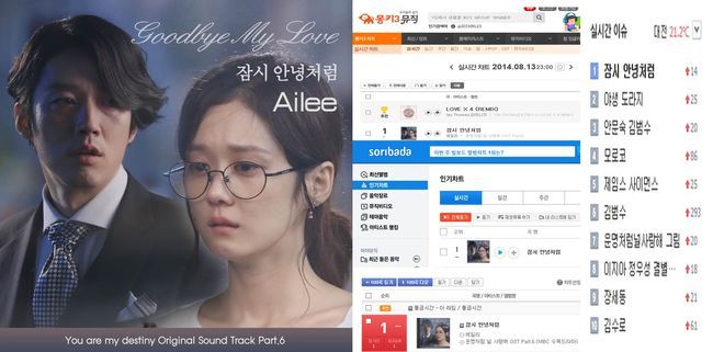 [OSEN=정소영 인턴기자] 가수 에일리가 지난 13일 발표한 MBC '운명처럼 널 사랑해'의 OST ‘잠시 안녕처럼’을 공개함과 동시에 각종 음악 차트를 석권하고 있어 화제다.