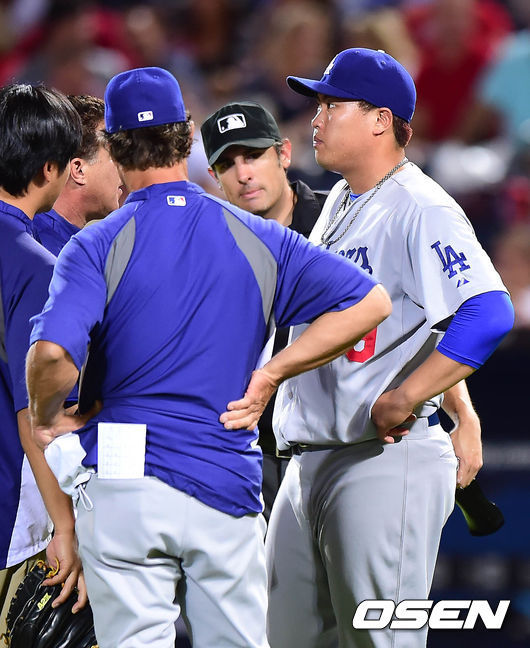 류현진(27, LA 다저스)이 뜻밖의 부상에 발목이 잡히며 강판됐다. 다저스는 3선발 류현진의 부상에 촉각을 곤두세웠다.