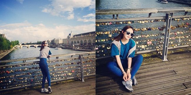공개된 사진 속에는 프랑스 파리의 아트교의 그림 같은 풍경을 만끽하고 있는 강민경의 모습이 보인다. 특히 강민경은 스키니진을 입고 긴 다리를 뽐내며 푸른색 티셔츠 위에 도트무늬 가디건을 묶어 ‘파리지엥’ 스타일을 연출해 보는 이들의 시선을 사로잡는다.