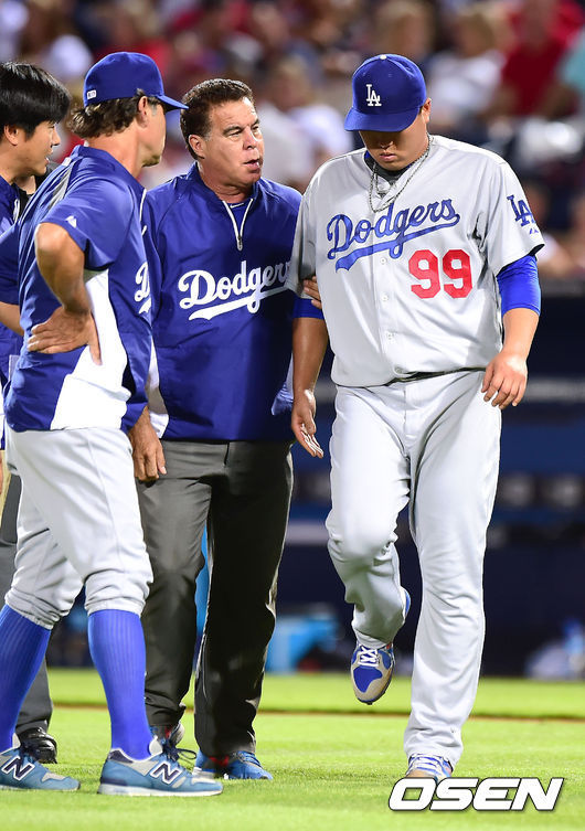 현지 보도에 따르면 류현진의 부상 부위는 햄스트링이 아닌 엉덩이 통증. 부상자 명단에 오를지는 좀 더 지켜봐야 할 것으로 알려졌다.