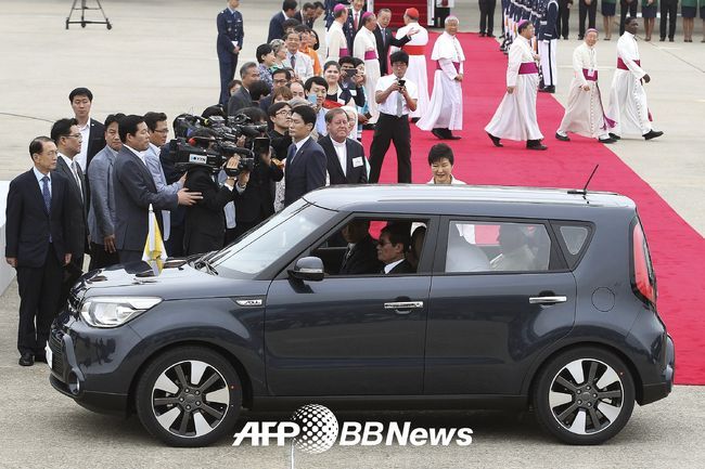 특히 교황의 차량으로 불리는 '포프모빌'에 관심이 쏟아졌다. 이날 교황은 방탄차가 아닌 국산 소형 박스카인 기아자동차 '쏘울'을 타고 이동했다. 교황을 태운 차량은 배기량 1600cc급인 '쏘울 1.6'이었고 색상은 '뉴포트 블루'였다.