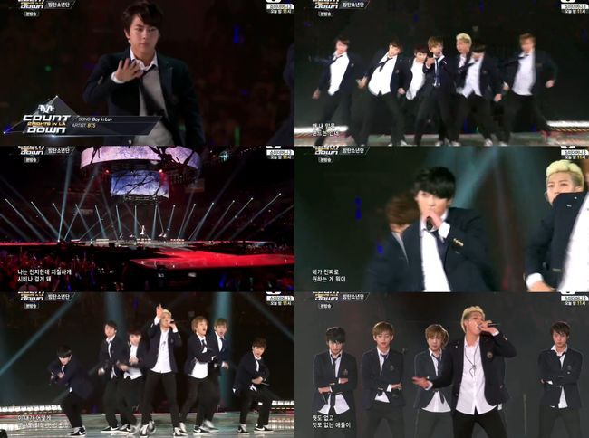 방탄소년단은 14일 오후 방송된 Mnet '엠카운트다운'에서 곡 '상남자', '진격의 방탄'으로 화려한 무대에 올랐다.