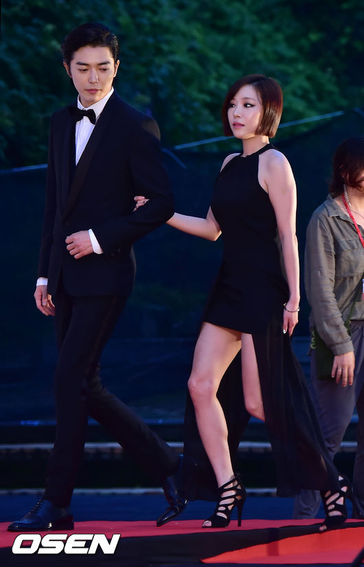 14일 오후 충청북도 제천시 청풍면 청풍호반 야외무대에서 제천국제음악영화제 개막식 및 레드카펫 행사가 열렸다. 김재욱과 가인이 레드카펫을 밟고 있다.